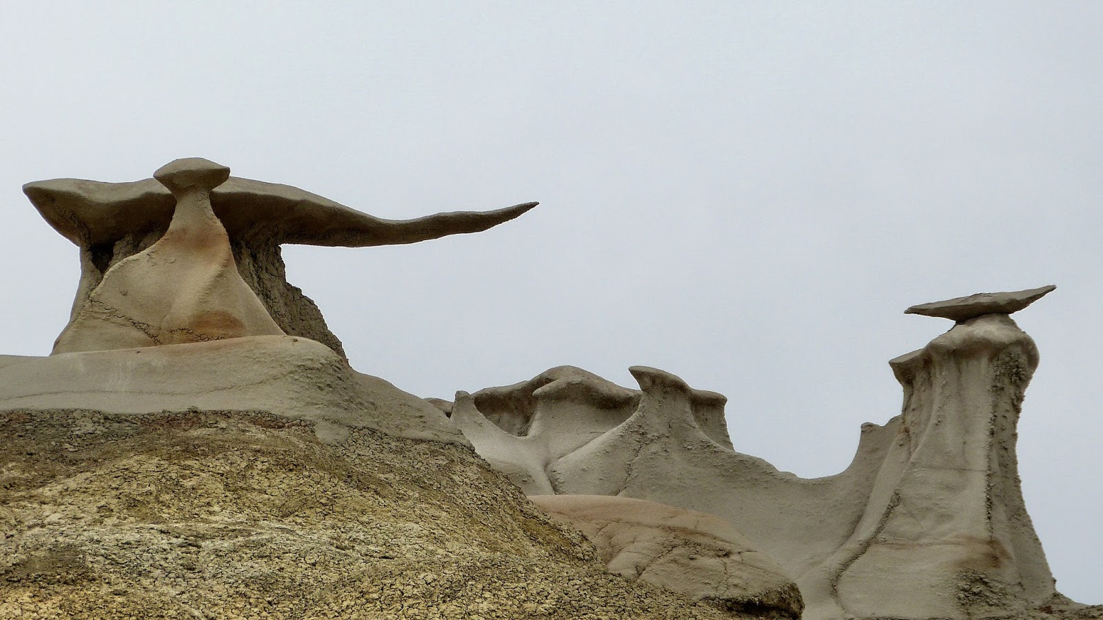 We vonden de Bisti's mooi en zijn blij dat we er geweest zijn, maar ze hebben bij ons geen onuitwisbare indruk nagelaten. Dit is echter zonder de minste twijfel enkel en alleen te wijten aan het grijze weer, waardoor de mooie bruine kleuren niet in dezelfde mate contrasteerden met de witte stenen en blauwe lucht, zoals we dit al wel al dikwijls op foto's gezien hebben. De talloze bizarre rotsstructuren maakten echter bijzonder veel goed en uiteraard opnieuw het gevoel van helemaal alleen op de wereld (of hier misschien wel een "andere" wereld) te zijn...